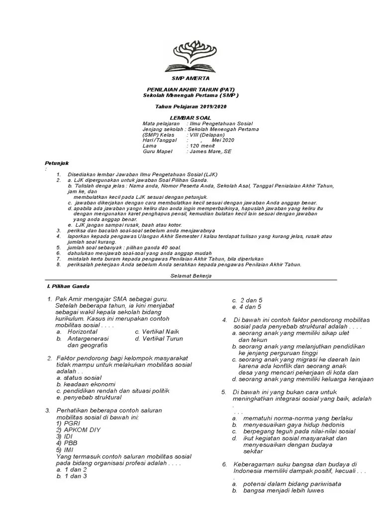 Contoh Gambar Faktor Pendorong Mbilitas Sosial Faktor Straktual Ekonomi Ganda - Soal Pat Ips Kls 8 Mei 20 Pdf - Materi sekolah ips kelas 8: